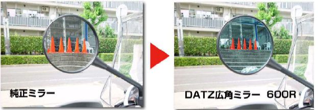 ミラーを均一に曲げる事により純正ミラーと同じ大きさで、約1.5~2倍に視界を広げる事の出来るミラーです。
