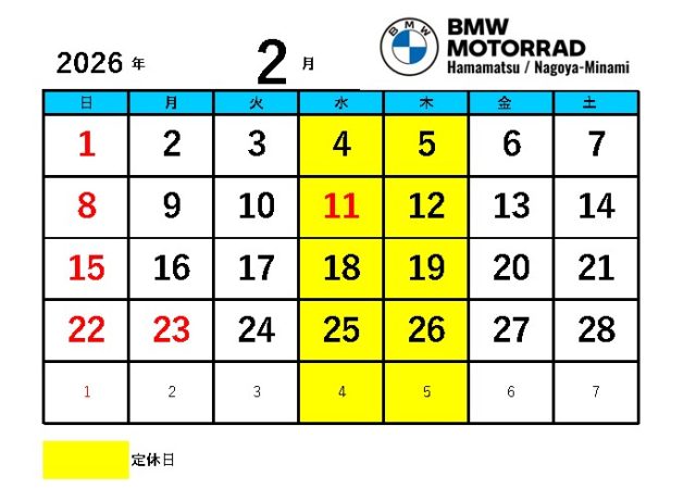 2月3月定休日のお知らせ