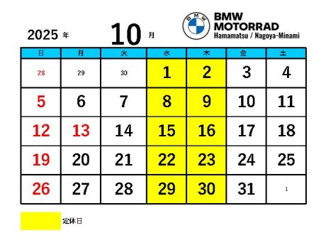 10月11月定休日 のお知らせ